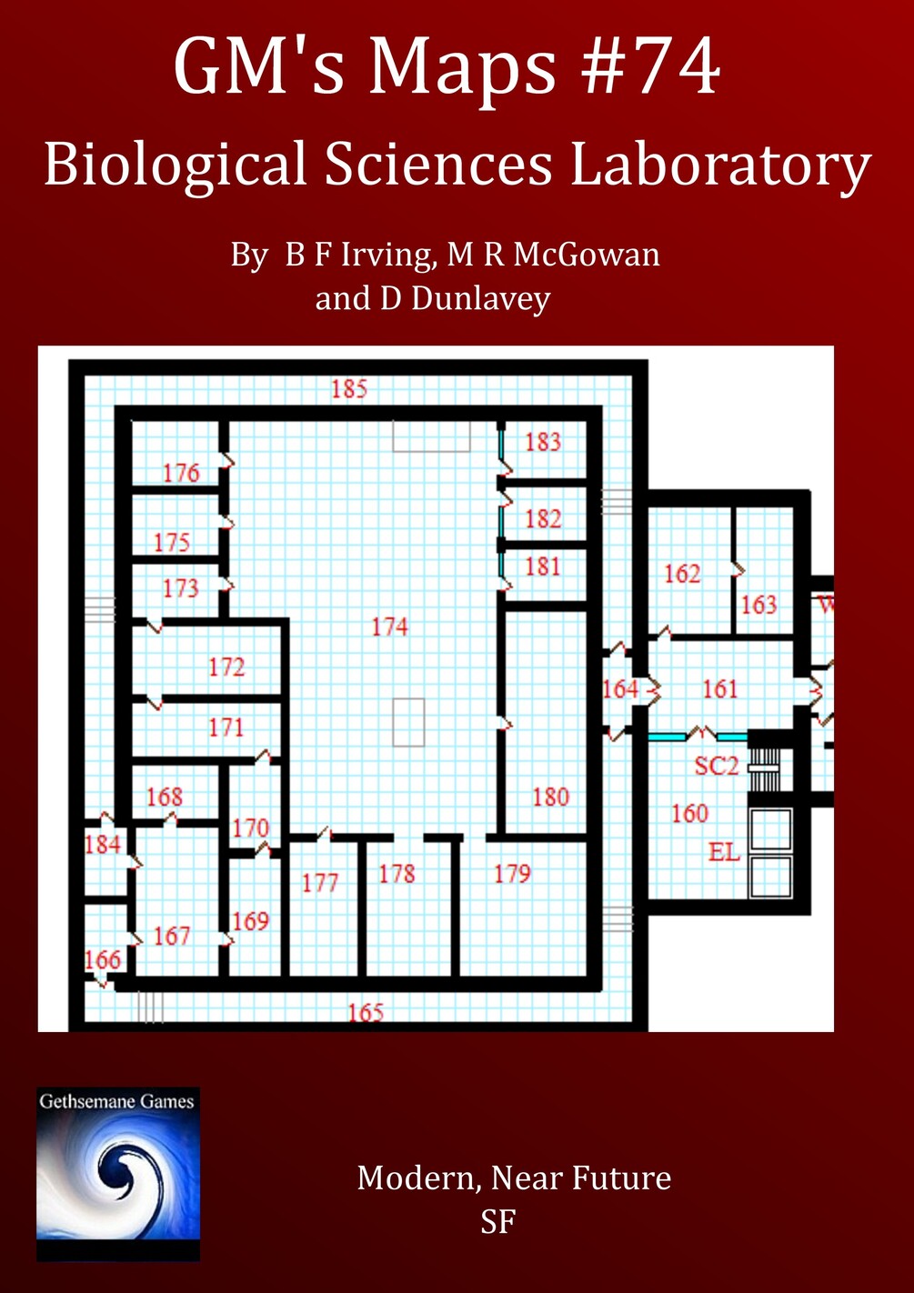 This product comes with blueprint-style maps (versions with or without grids) of the laboratory, information on the various biosafety levels (BSL 1 to BSL 4) and ten adventure hooks to use with the maps.