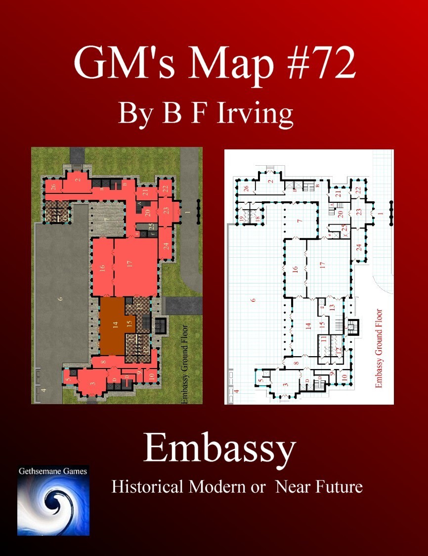 This map pack includes both blueprint style and full-colour maps as well as a PDF containing a key, information about the work of diplomatic missions and 11 scenario ideas. Sample Adventure Ideas: